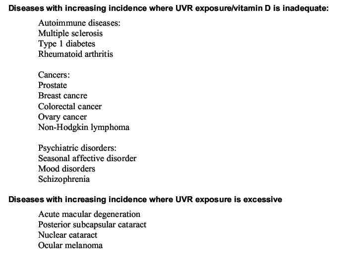 - Low UVB (thus low Vitamin D) is linked to many diseases – Grant Jan 2016