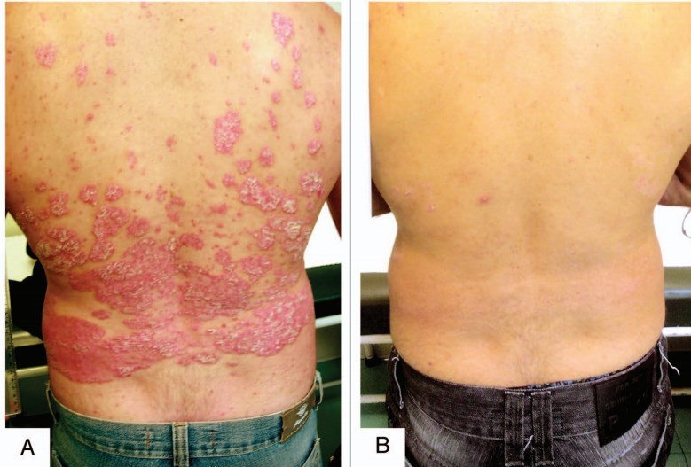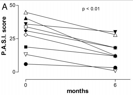 All psoriasis patients were scored according to “Psoriasis Area and Severity Index” (PASI) at baseline and after treatment.