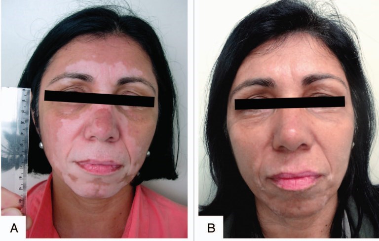 Two out of 16 vitiligo patients showed no repigmentation of the affected areas;