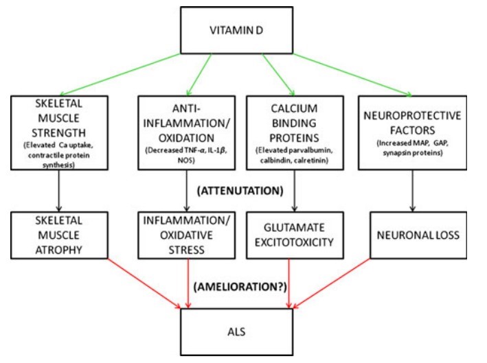 - Vitamin D levels are associated with gross motor function in amyotrophic lateral sclerosis.- April 2017