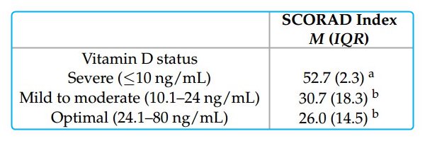 Conclusions: Vitamin D supplementation reduces AD severity in children and adults.