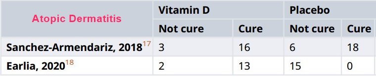 - Atopic Dermatitis: 8 ng lower vitamin D - meta-analysis Aug 2022