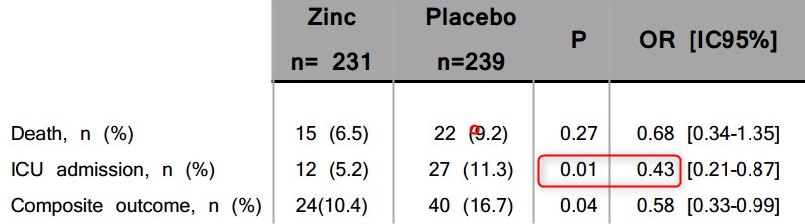 COVID ICU half as likely if take 2 Zinc pills daily after enter Hospital - Nov 2022