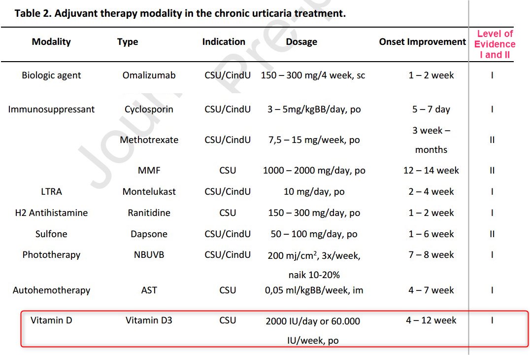- Chronic Urticaria alternative treatments include vitamin D - March 2023