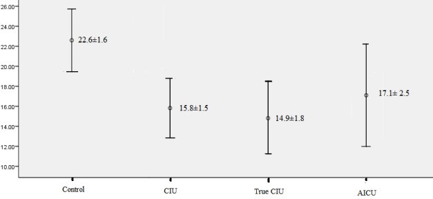 comparison with the control group (p=0.005) (Figure 1). However, considering AICU patients separately,