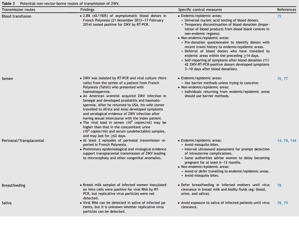 •Probable transplacental and sexual transmissions of ZIKV have been reported.