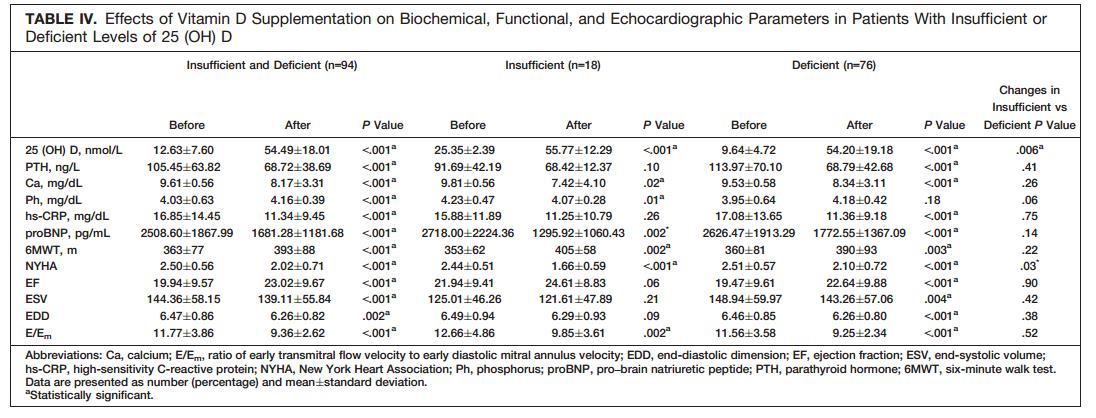Restoration of serum 25(OH) D level was also associated with substantial improvement in NYHA class (P<.001) and 6-minute walk distance (P<.001).