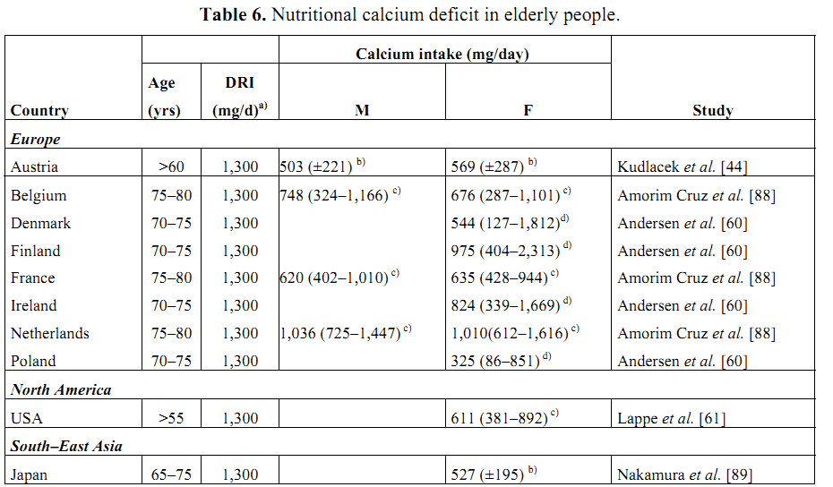 Many tables of deficiency of vitamin D and Calcium in many countries around the world i