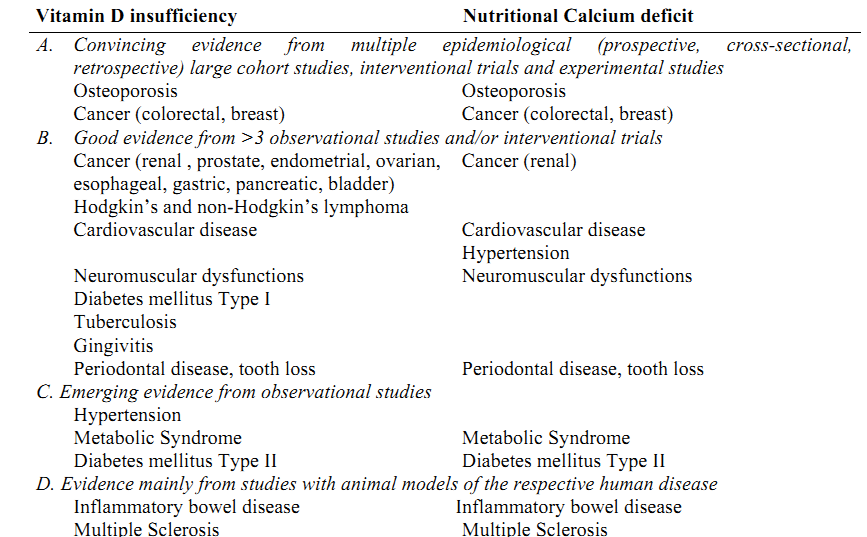 Extracted from Table 1. Rating of evidence for association of vitamin D and/or calcium insufficiency with frequent chronic diseases
