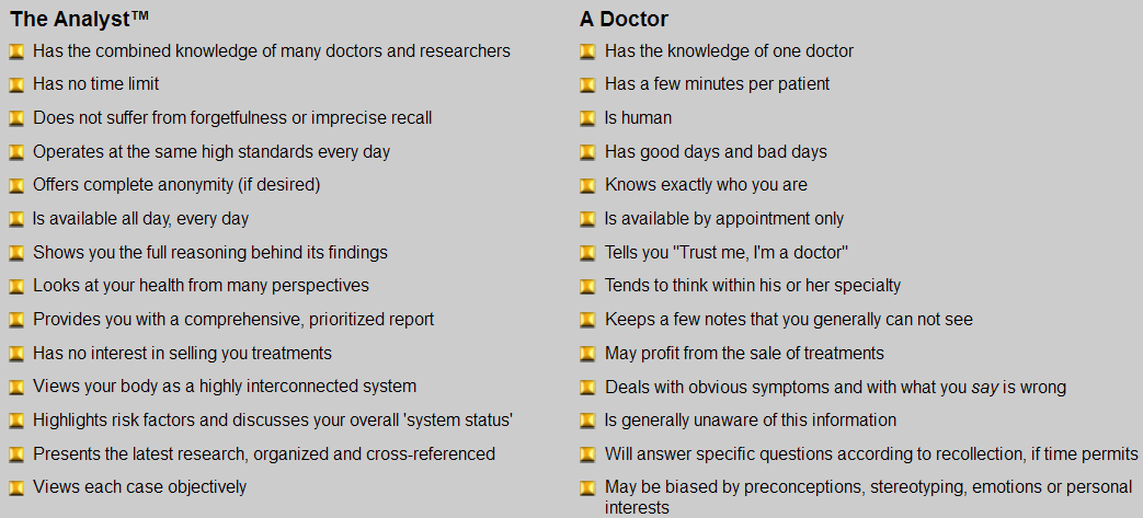 They have an analysis service ($25, $55, $77) which they compare to a doctor as follows