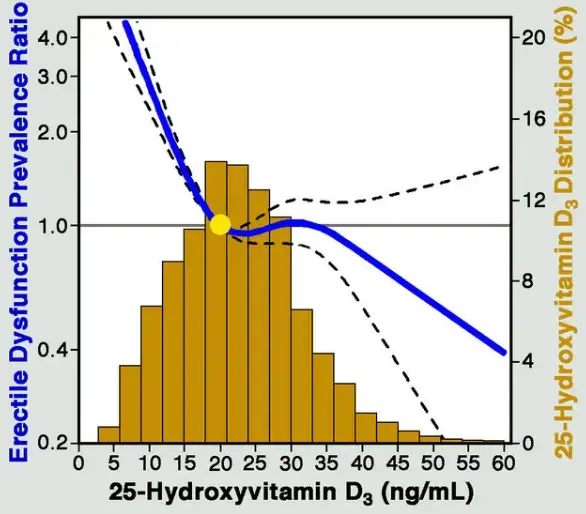 - 11,000+ studies of ED and Vitamin D: A good level of Vitamin D (20-50 ng) both prevents and treats