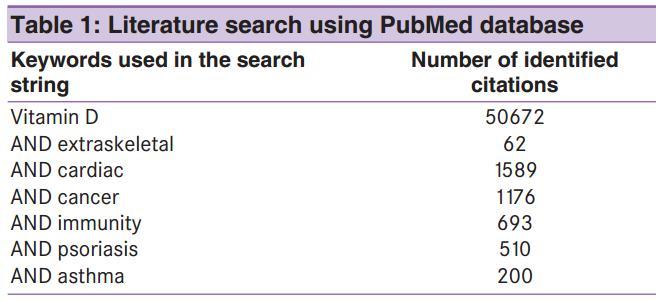 A search using PubMed database yielded 50672 citations for vitamin D, it emerging from a nutrient to one of the most talked about and researched drugs. The results of the literature search are as in Table 1.