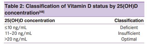 Table 2: Classification of Vitamin D status by 25(OH)D concentration 25(OH)D concentration