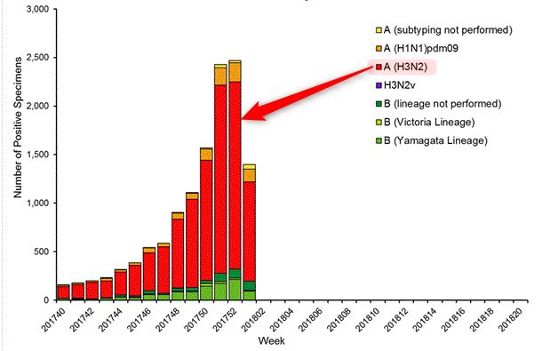 - "This season is closely paralleling the 2014-2015 season, which was dominated by the same H3N2 flu strain and was also “moderately severe.”"