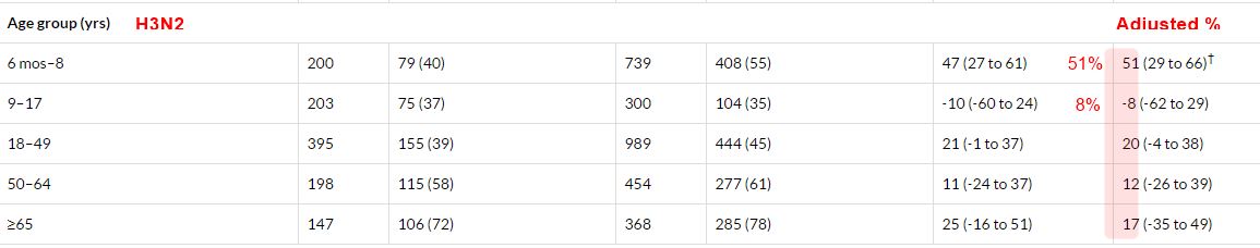 - "..25 percent effective against the H3N2 strain of flu that is causing most illnesses and deaths..."