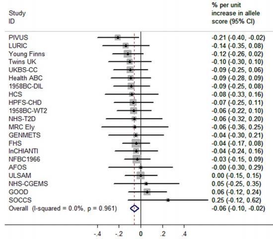 By contrast, although both 25(OH)D allele scores were strongly associated with 25(OH)D levels, neither score was associated with BMI. This lack of an association between 25(OH)D allele scores and obesity was confirmed using data from more than 100,000 individuals involved in 46 studies that has been collected by the GIANT (Genetic Investigation of Anthropometric Traits) consortium.