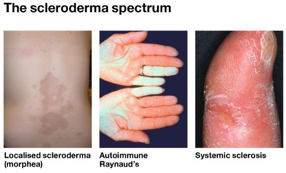 “Systemic scleroderma can involve the skin, esophagus, gastrointestinal tract (stomach and bowels), lungs, kidneys, heart and other internal organs. It can also affect blood vessels, muscles and joints.”