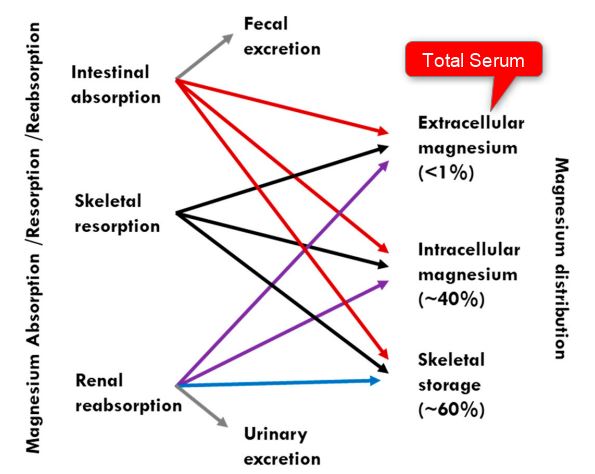 Magnesium is essential for maintaining normal cellular and organ function. In-adequate magnesium balance is associated with various disorders, such as skeletal deformities, cardiovascular diseases, and metabolic syndrome. Unfortunately, routinely measured serum magnesium levels do not always reflect total body magnesium status. Thus, normal blood magnesium levels eclipse the wide-spread magnesium deficiency. Other magnesium measuring methods, including the magnesium loading test, may provide more accurate reflections of total body magnesium status and thus improve identification of magnesium-deficient individuals, and prevent magnesium deficiency related complications.