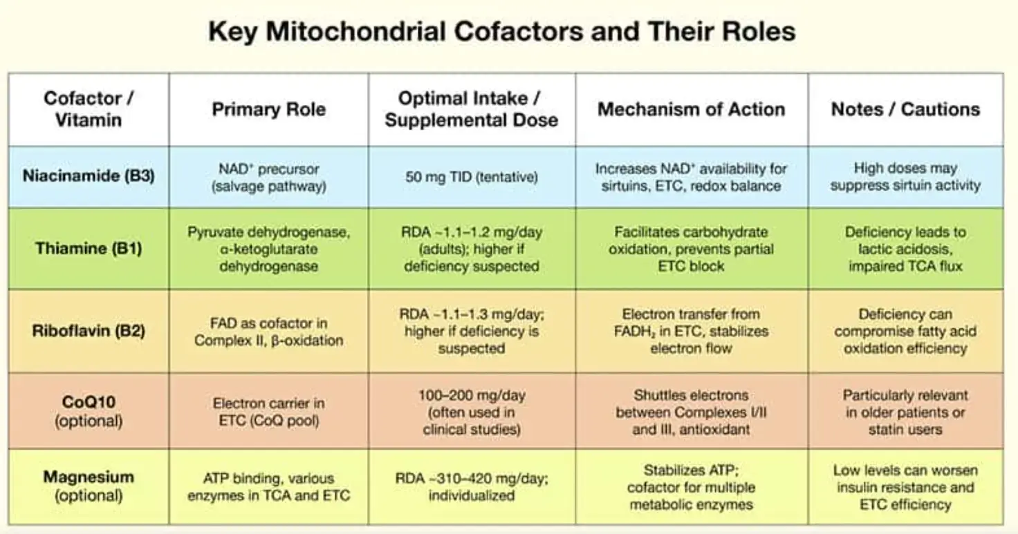 Mirocondrial cofactors: B1, B2, B3, CoQu10, and Magnesium July 2025