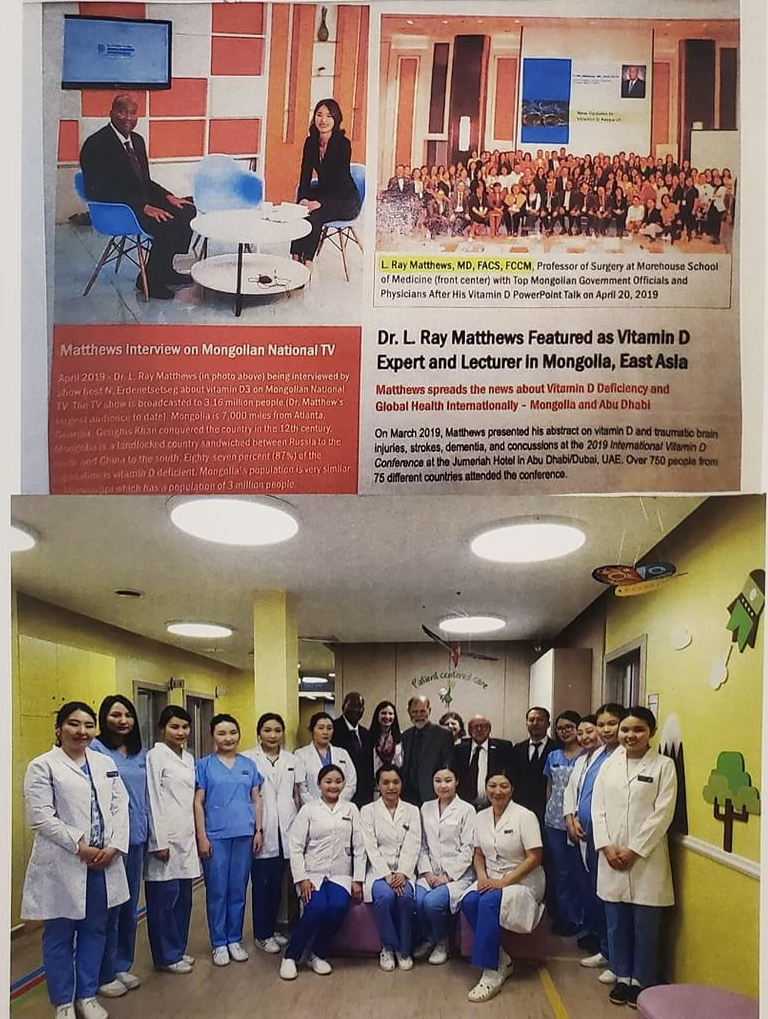 Eighty-seven per cent (87%) of Mongolia's population was vitamin D3 deficient in April 2019, when we visited the highly disciplined country. Mongolia started an aggressive "National Vitamin D3 Program" to educate and treat its citizens. Mongolia has had two (2) deaths from the coronavirus. Mississippi has had many 6,669 deaths from the coronavirus. The second (2nd) photo below shows me being interviewed on Mongolian National TV and addressing Mongolia's politicians and medical community. The third (3rd) photo below shows us visiting a medical clinic and interacting with young Mongolian doctors. Vitamin D3 is God's miracle vitamin!”