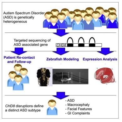 Subtype of autistic childen all had CHD8 mutation, Zebra fish given CHD8 mutation had the same symptoms