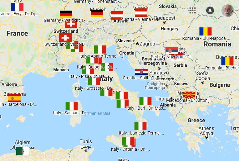 Shown on Google Maps with details on each doctor Map as of July 2021