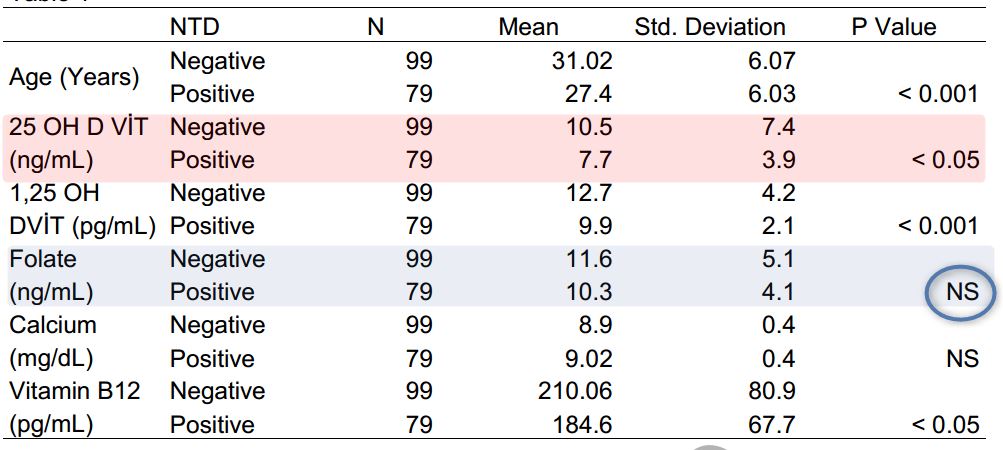 :Low vitamin D WAS associated with NTD, Folate was NOT - 2017