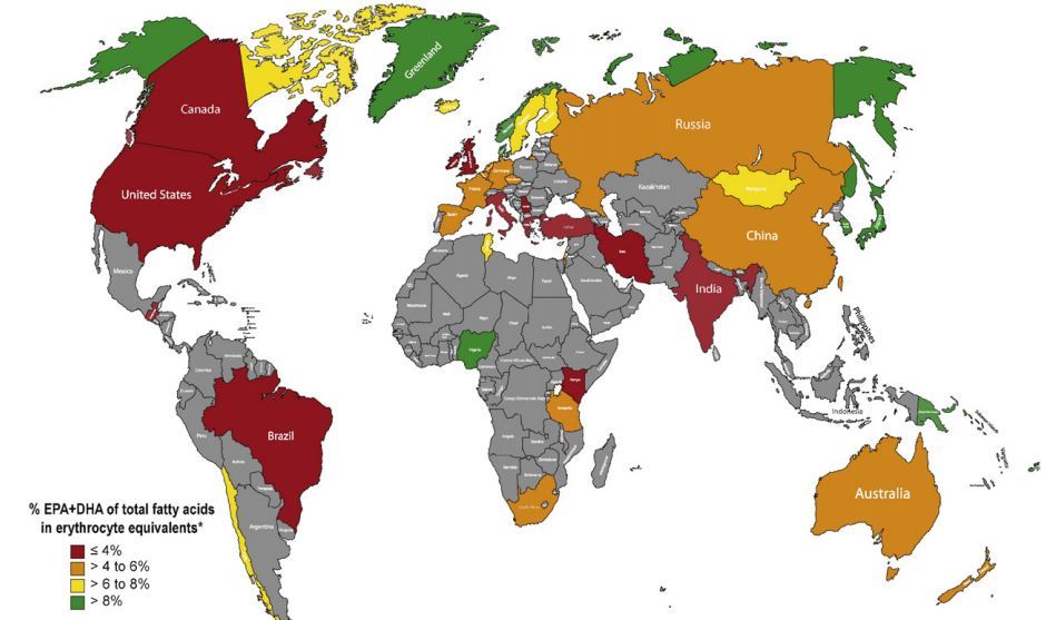main page on VitaminDWIki =Omega-3 map (most of the world has low levels) – May 2016