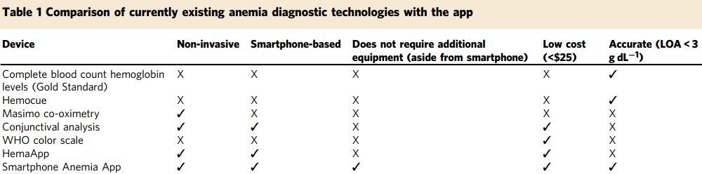 Smartphone app for non-invasive detection of anemia using only patient-sourced photosThis appears to be the 3rd smartphone application to detect anemia