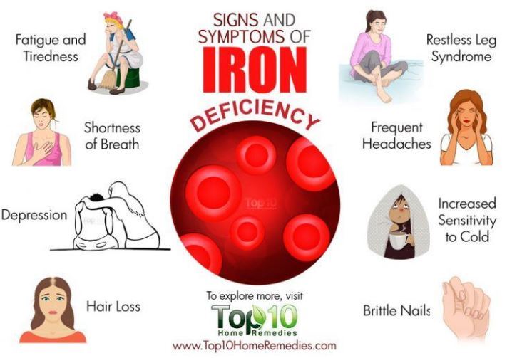 Symptoms of iron deficiency: