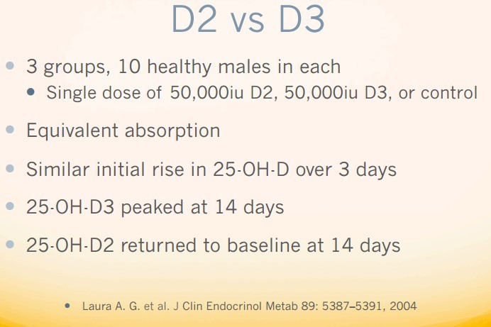- Following large doses of vitamin D2, Vitamin D3 doses were unable to achieve sufficiency – Jan 2014