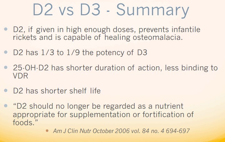 Vitamin D2 has been known for a long time to not be as good as vitamin D3
