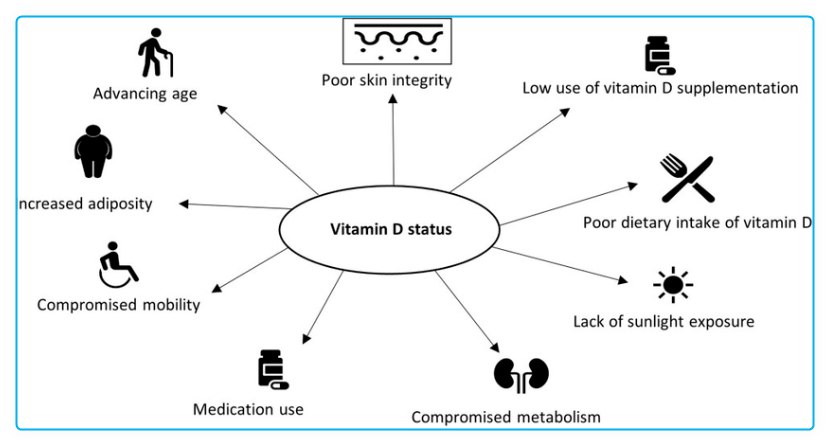- Lifestyle Factors: Older adults may engage in less outdoor physical activity, reducing their exposure to sunlight, which is necessary for the skin to produce vitamin D 4