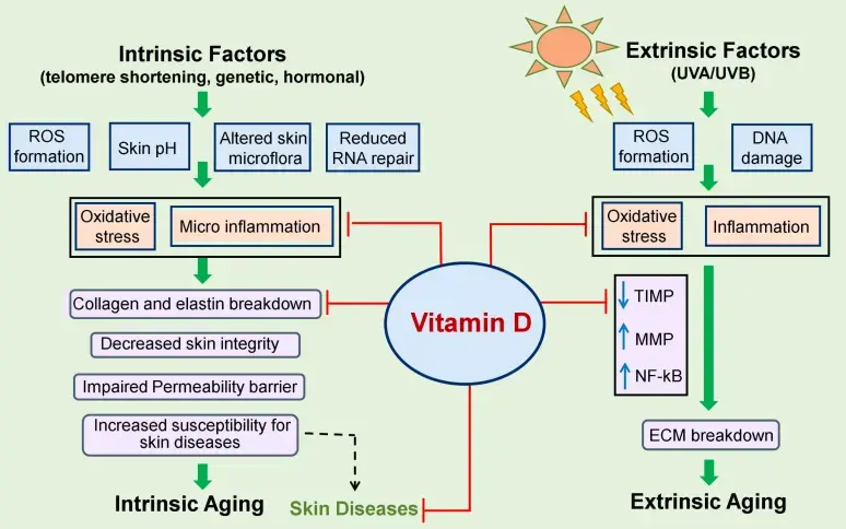 This comprehensive review examines the relationship between vitamin D and skin aging,