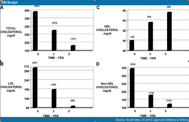 Figure 1. A, Total and low-density lipoprotein (LDL) cholesterol, high-density lipoprotein (HDL) cholesterol and non-HDL cholesterol at baseline on ezetimibe only, after three years on ezetimibe, fluvastatin and colesevelam. B, Low-density lipoprotein. C, High-density lipoprotein. D, Non-high-density lipoprotein cholesterol.
