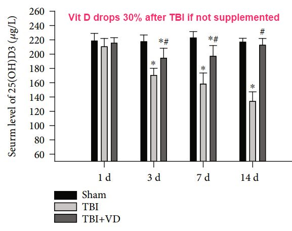 - Optimal vitamin D level ameliorates neurological outcome and quality of life after traumatic brain injury: a clinical perspective - Sep 2021 https://doi.org/10.1080/00207454.2021.1924706 Behind paywall