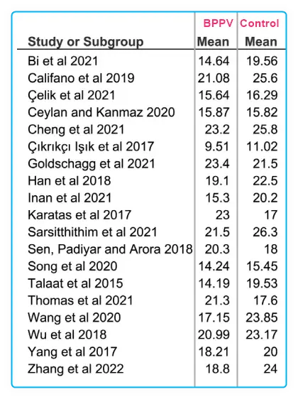 Conclusion: The available evidence suggests that BPPV is associated with decreased levels of serum Vitamin D, and vitamin D deficiency was an independent risk factor for BPPV.