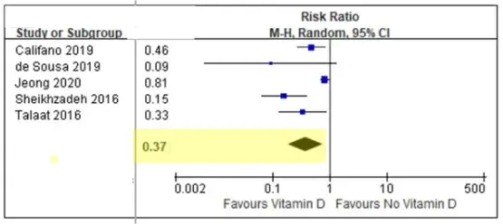 - vitamin D deficiency (MD = - 3.29; 95% CI - 5.32 to - 1.26; P = 0.001).