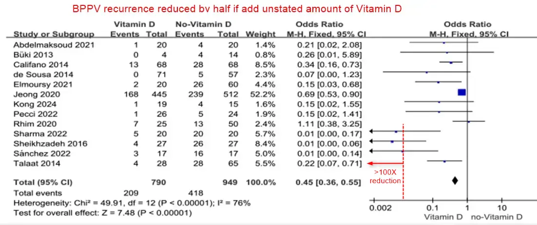 Vertigo (BPPV) greatly reduced by Vitamin D - meta-analysis April 2025