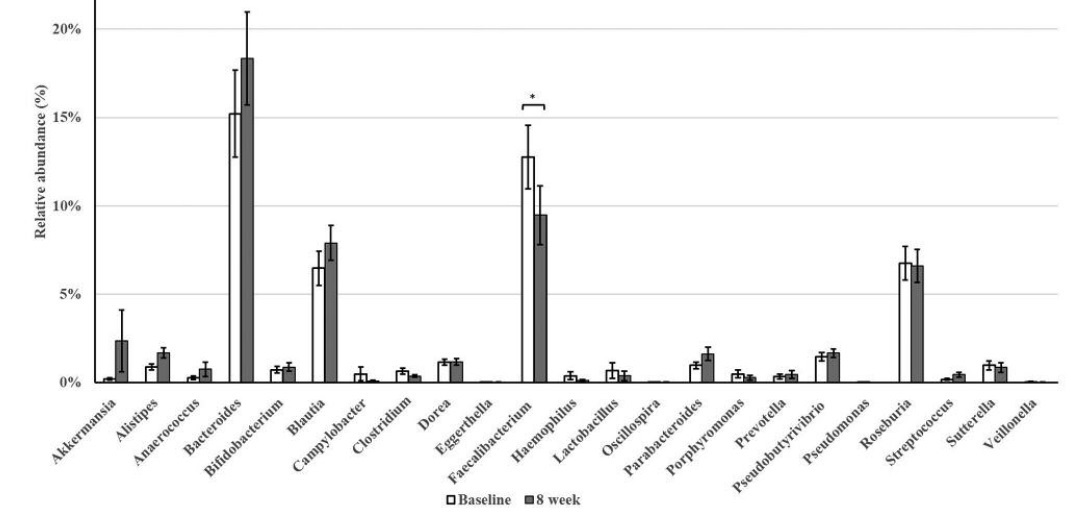 Patients and Methods: Twenty adults with vitamin D insufficiency/deficiency 25(OH)D <30 ng/ml were enrolled and given 600, 4,000 or 10,000 IUs/day of oral vitamin D3. Stool samples were collected at baseline and 8 weeks for identifying gut microbiota using 16S rRNA gene amplification and sequencing.