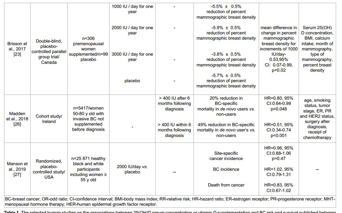 - Vitamin D reduced Breast Cancer mortality in 9 out of 9 studies, yet still no consensus – April 2019