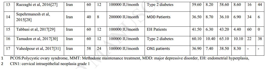 Finally, we showed that vitamin D supplementation can improve OS parameters; however, this finding may not be clinically significant. Further large prospective clinical trials are needed to confirm the effect of vitamin D supplement on other OS parameters.