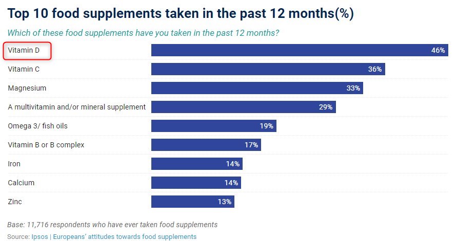 - Vitamin D was the most supplemented vitamin or mineral in the US - 2017
