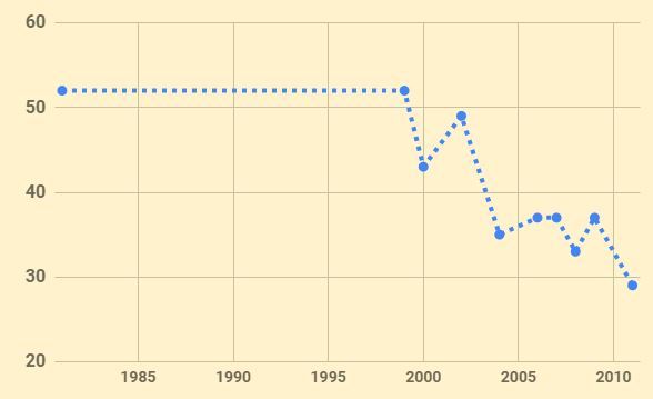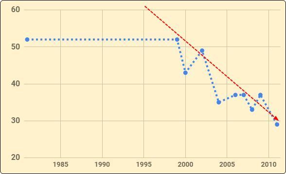 Note: Only a single data point for 1981-1999 - unable to see trends during it.