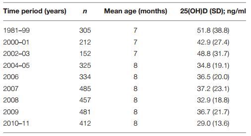 25(OH)D Concentration in Neonates, Infants, and Toddlers From Poland—Evaluation of Trends During Years 1981–2011 - Nov 2018