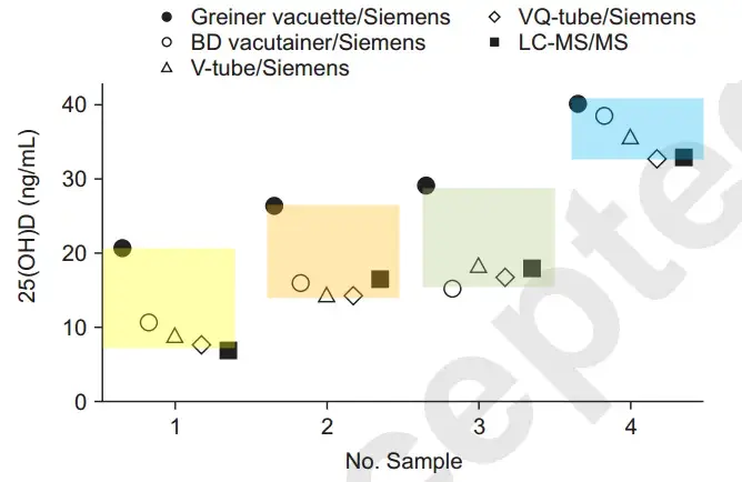 - Yu S, Cheng X, Fang H, Zhang R, Han J, Qin X, et al. 25OHD analogues and vacuum blood collection tubes dramatically affect the accuracy of automated immunoassays. Sci Rep 2015;5:14636.
