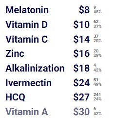 - $10 of Vitamin D to save a COViD life (many charts at https://c19early.org/ )