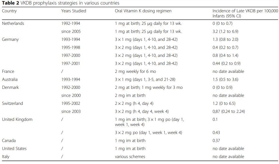 - Neonatal Vitamin K Administration for the Prevention of Hemorrhagic Disease: A Review of the Clinical Effectiveness, Comparative Effectiveness, and Guidelines. Canadian agency for drug and technologies in health. 2015.