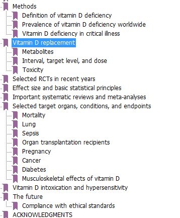 • 25. Martucci G, McNally D, Parekh D, Zajic P, Tuzzolino F, Arcadipane A. et al. Trying identify who may benefit most future Vitam D intervention trials: a post hoc Anal VITDAL-ICU study excluding early deaths. Crit Care. 2019;23:200. https://doi.org/10.1186/s13054-019-2472-z.