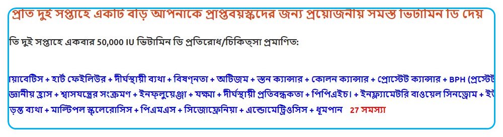 - 50,000 IU of Vitamin D every two weeks fights 27 health problems